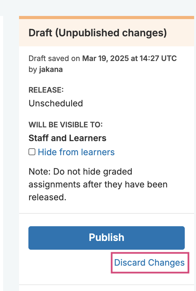 When you make any of these changes, if you previously published the unit, the state changes to Draft (Unpublished changes). You must then publish the unit to make your edits visible to learners.