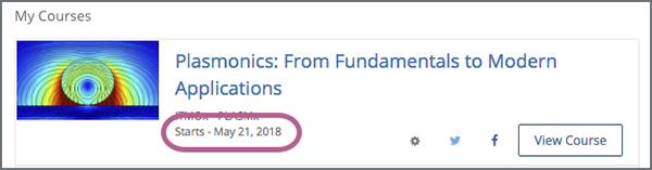 After you enroll in a course, the course is visible on your dashboard together with the course start date. After the course start date has passed, you can access course content.